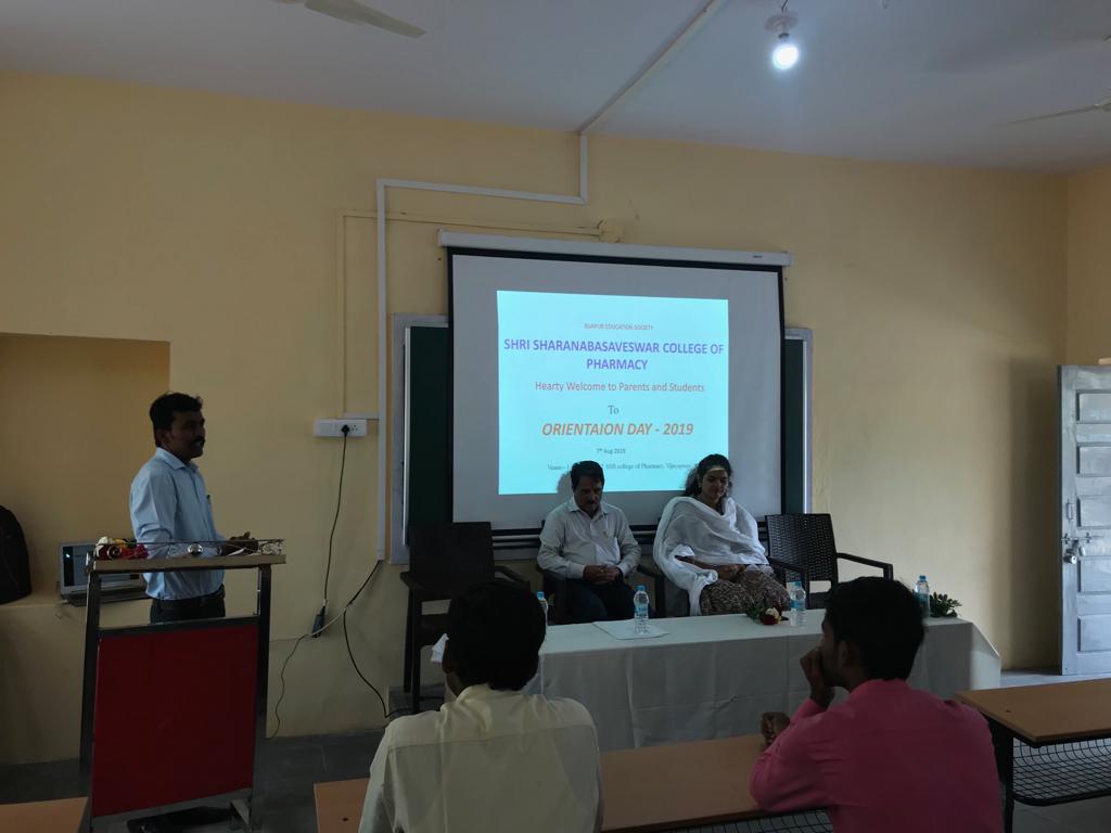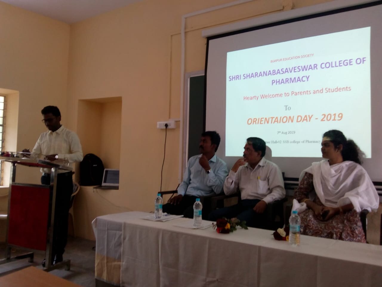 Organized the orientation for New batch and First batch students of Shri Sharanabasaveshwar college of Pharmacy vijayapura on 7th August 2019. Miss. Samyuktha Patil executive director SSB group of Institution vijayapur and prof. S K Patil Adviosry committee member SSB vijayapura present during the occasion.